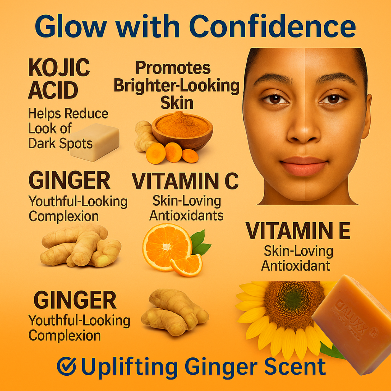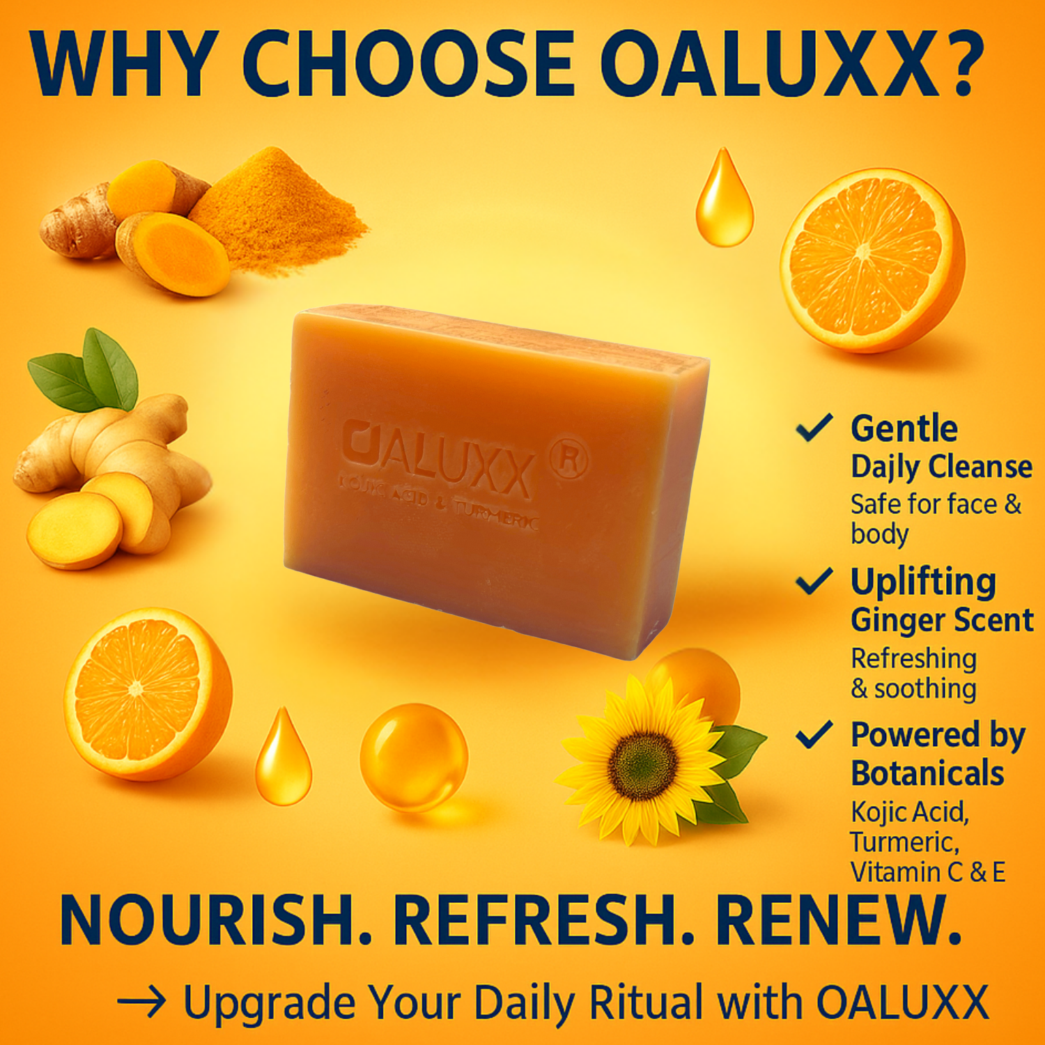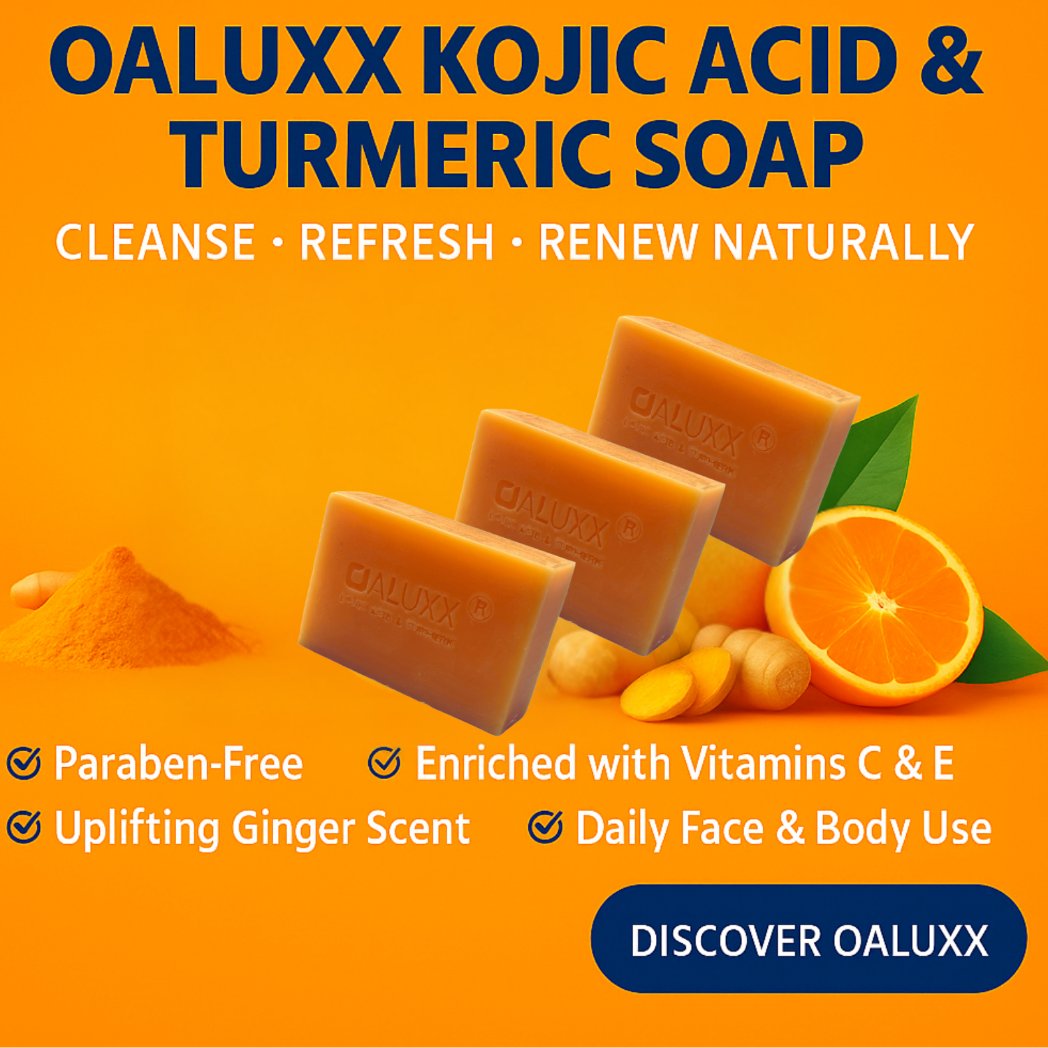 OALUXX Kojic Acid & Turmeric Soap – Daily Face & Body Cleanser (3.5 oz)