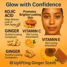 - 🌿 Kojic Acid + Turmeric Extract – support an even-looking complexion.